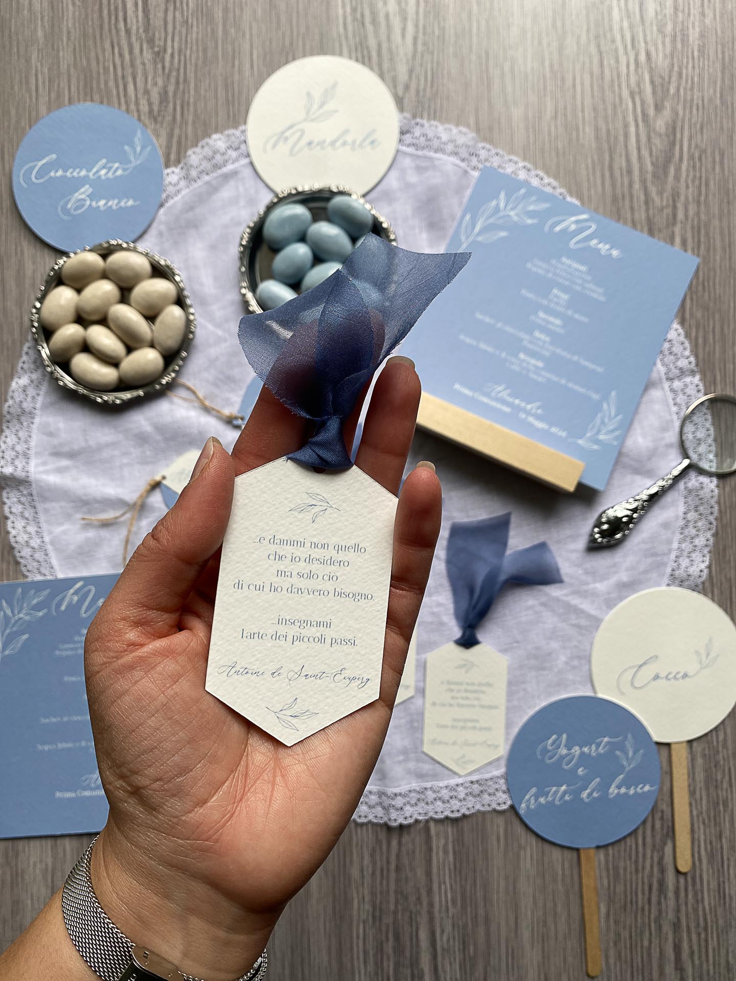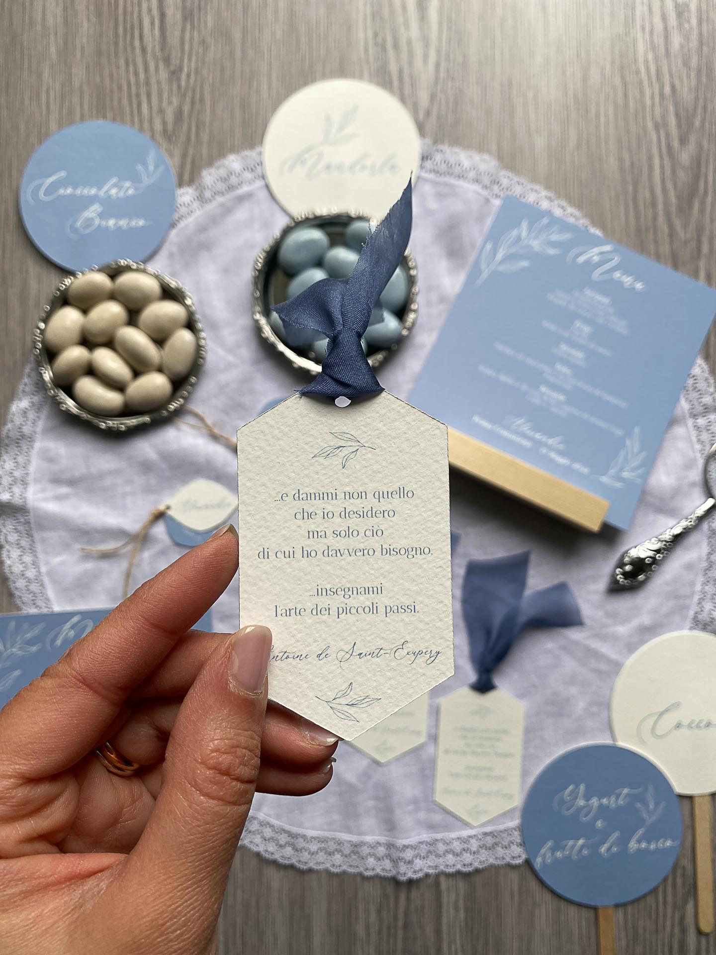 Dalla scelta della carta al design più raffinato, tenendo bene a mente la palette colori scelta per l’evento, realizzando un coordinato grafico unico ed elegante, che rifletta perfettamente il tuo stile.