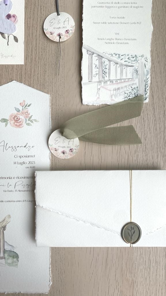 - Perché scegliere un invito in carta Amalfi?Ccon la sua texture morbida e porosa, e il suo caratteristico bordo leggermente sfrangiato, conferisce agli inviti di nozze un’eleganza senza tempo e un tocco di romanticismo